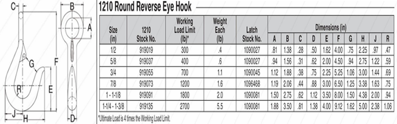 1210 Round Reverse Eye Hook, Carbon Steel , Galvanized Finish , Weight: .4-5.5lb, Designed for Secure Reverse-Eye Load Attachment & Heavy-Duty Rigging.