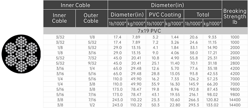 - Construction: 7×19 PVC