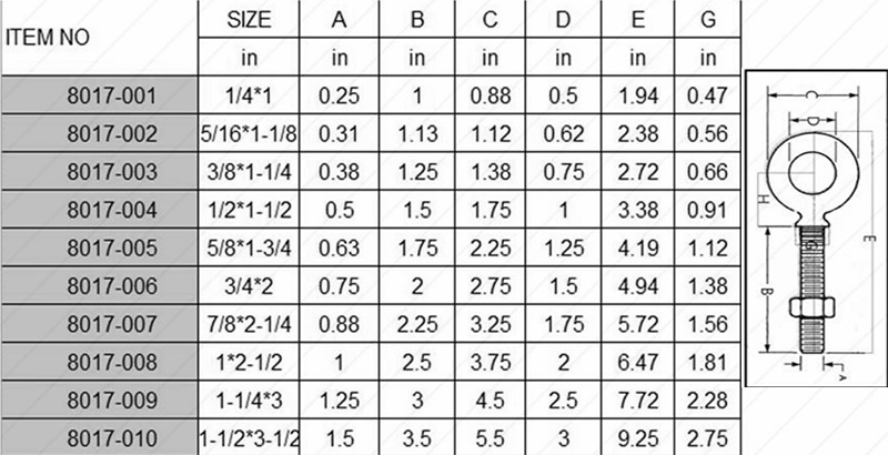 Welcome to buy the newest and cheapest G279 Eye Bolt from HLM INDUSTRY. We are one of the leading manufacturers and suppliers in China, offering wholesale, OEM services, and discounted pricing. With CE certification, our in-stock products are manufactured to the highest standards in China, ensuring premium quality at competitive prices. Feel free to request a free sample.