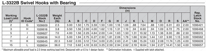 - L-3322 hooks incorporate markings forged into the product which address two(2)QUIC-CHECK® features: