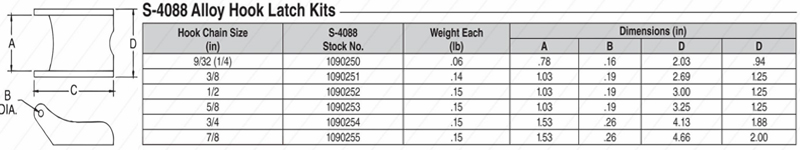 S-4088 Latch Kits, Alloy Steel Construction, Secure Fit for Grade 8 Sling Hooks,Weight: .06-.15lb.
