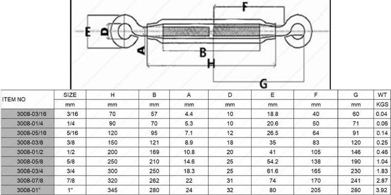 HLM Turnbuckle with Eye&Eye, Korean Type | Stainless Steel | WT: 0.04-3.92kgs | Size: 3/16-1″mm