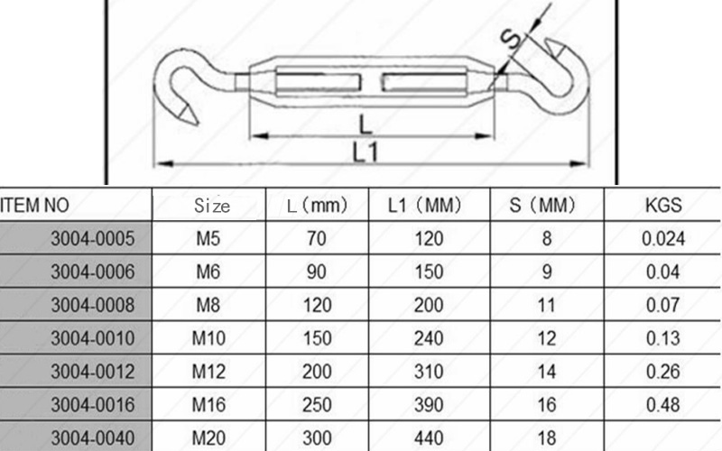 HLM Turnbuckle with Hook&Hook, European Type | Stainless Steel | WT: 0.024-0.48kgs | Size: M5-M20