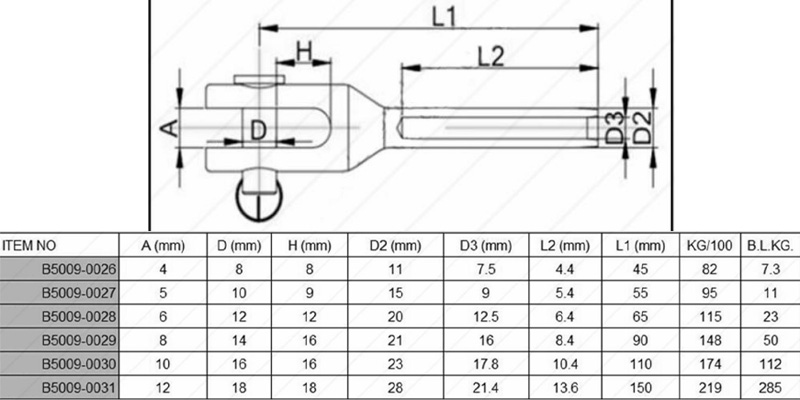 U Swage Fork, Stainless Steel | Hot-Drop Forged from Marine-Grade AISI 304/316 Stainless Steel for Multi-Axis Load Distribution and Extreme Corrosion Resistance in Offshore Mooring and Suspension Bridge Systems.